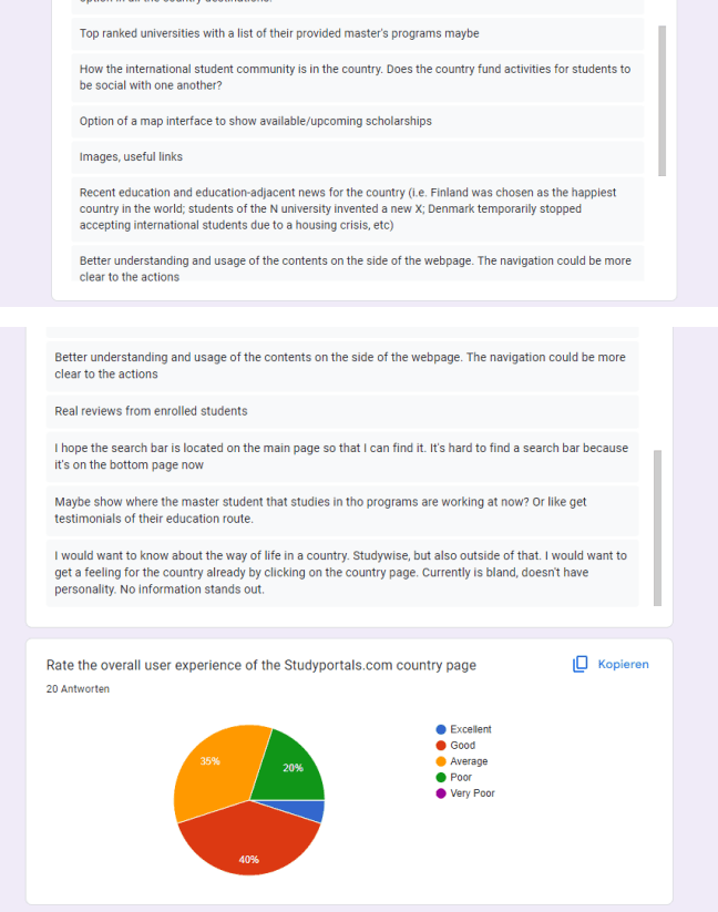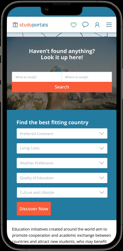 Study portal is a platform to gather information regarding students’ intended area of study, preferred university, country of choice, or any other particulars concerning the enrollment process. Studyportal as a client is looking forward to rearranging the country page to reduce the bounce rate and increase the traffic. The design challenge includes adding functionality to the website and improving the overall user experience to generate more leads and reduce the bounce rate on the country page. Since Studyportals is a portal for students all around the world, the user research will be conducted with students.