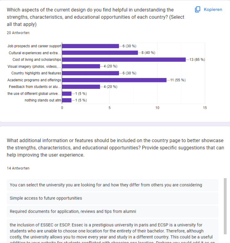 In what ways can the design be changed and optimized in order to showcase the strengths, characteristics and educational chances of each country?